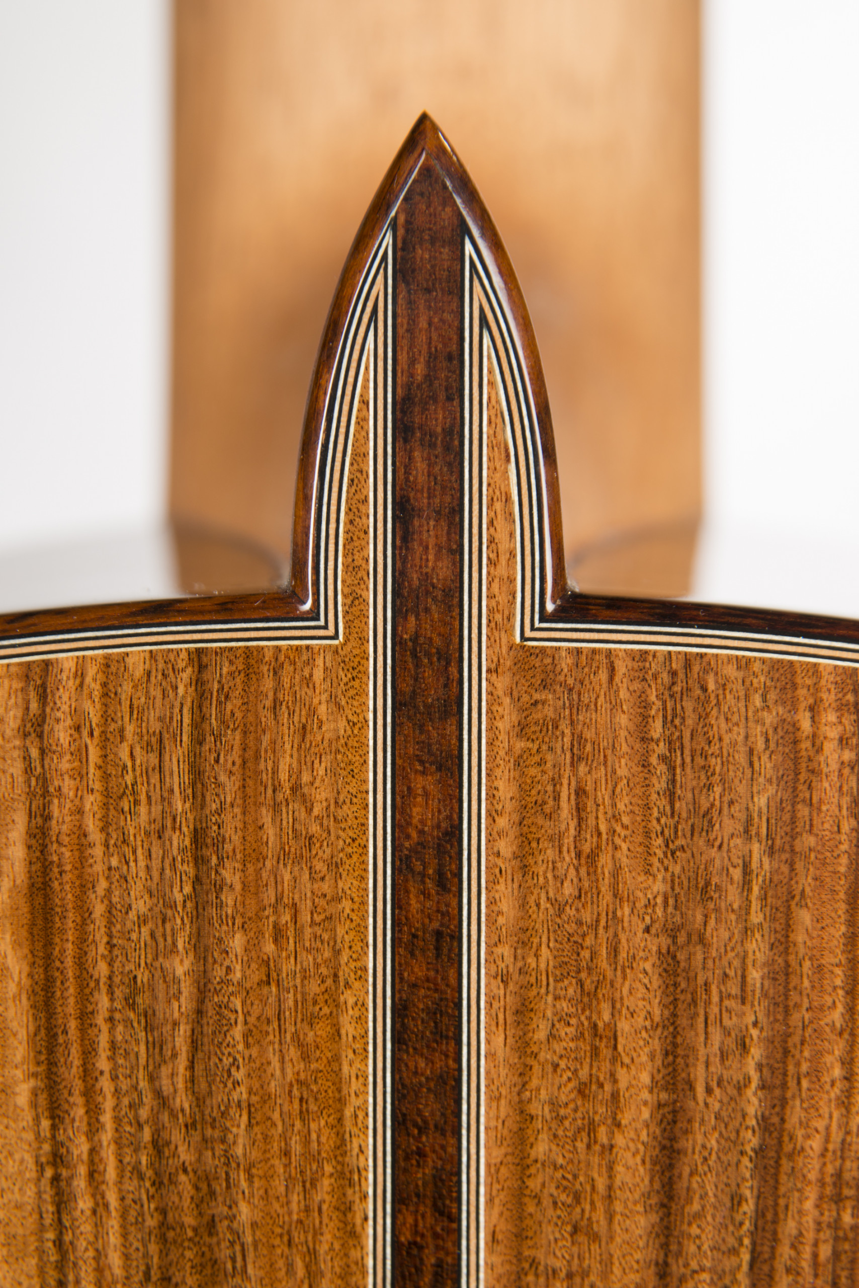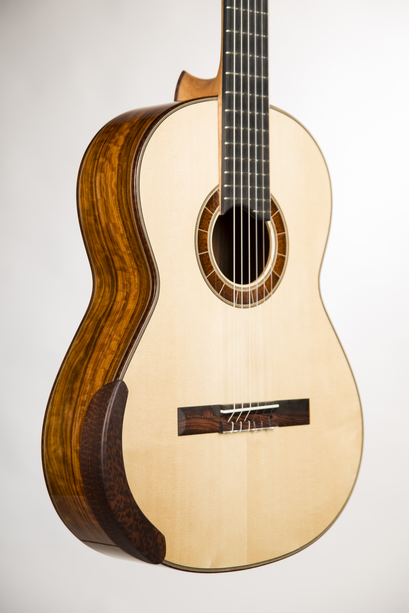 Ein mögliches Ausführungsbeispiel mit Korpus aus Santos Palisander und Intarsien und Armstütze aus Schlangenholz